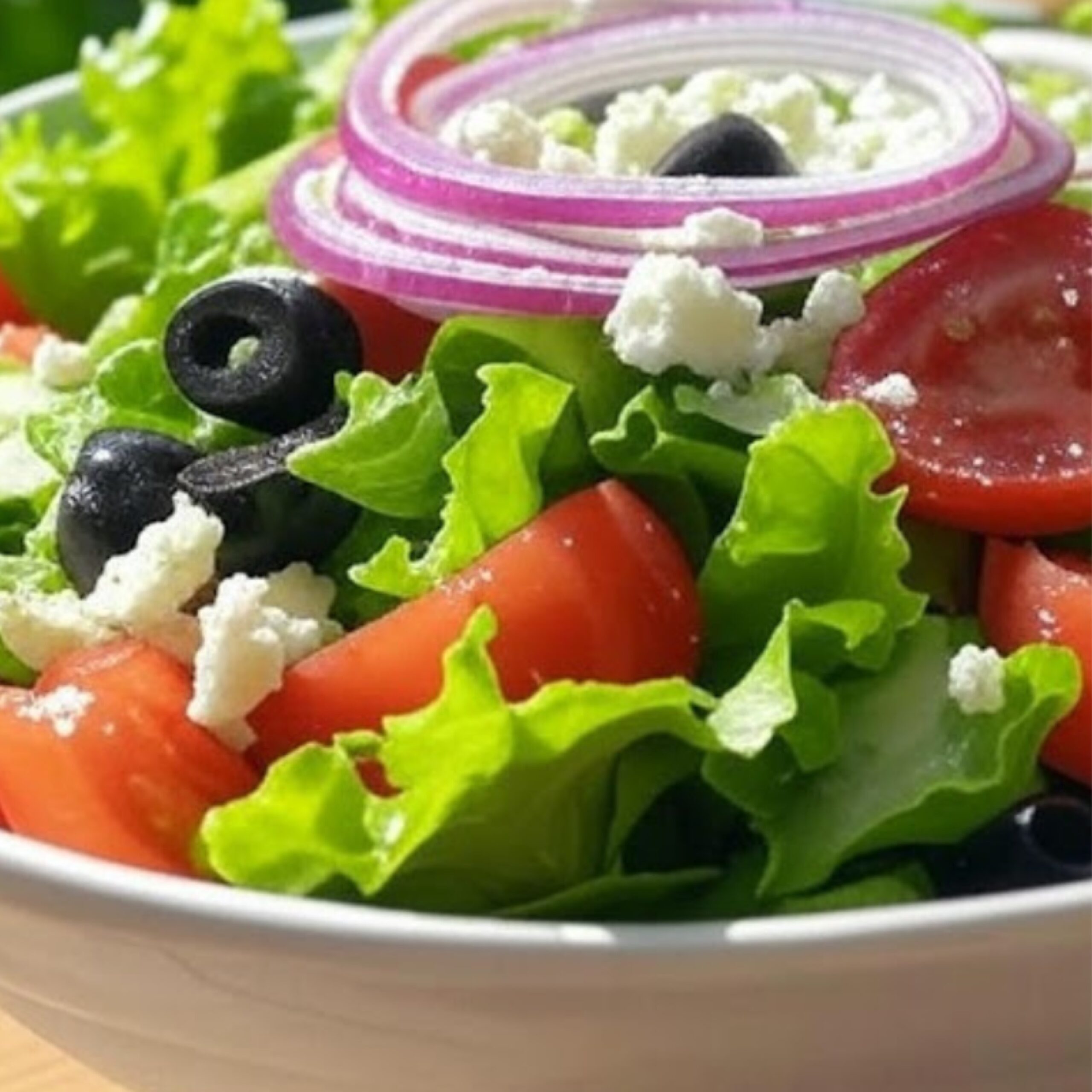Fresh tomatoes, cucumber, kalamata olives, red onions and feta cheese, drizzled with olive oil and oregano.